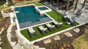 Gazon artificial în jurul piscinei: frumos, sigur și fără bătăi de cap